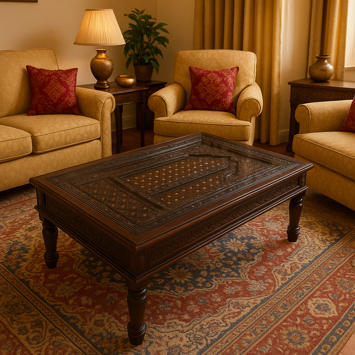 This piece brings an air of old-world opulence into modern living spaces. Its robust structure and artisanal carvings make it more than just a table, it's a conversation starter, a functional heirloom, and a celebration of traditional Indian craftsmanship. Whether placed in a living room, study, or heritage-inspired lounge, the Amar Mahal table anchors the space with its regal charm.